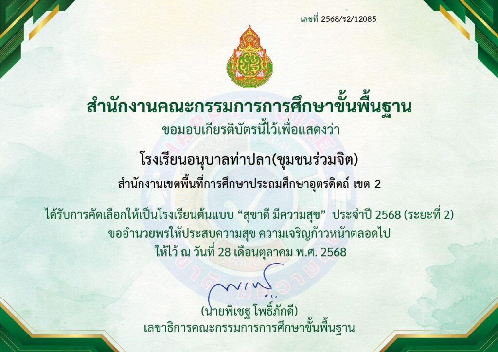 โรงเรียนอนุบาลท่าปลา(ขุมชนร่วมจิต) ได้รับการคัดเลือกให้เป็นโรงเรียนต้นแบบ “สุขาดี มีความสุข” ประจำปี 2568 (ระยะที่ 2)ณ วันที่ 28 เดือนตุลาคม พ.ศ. 2568 จาก สำนักงานคณะกรรมการการศึกษาขั้นพื้นฐานนายฉัตรกมล สมแตง ครูผู้รับผิดชอบโครงการ 12 พฤศจิกายน 256812 พฤศจิกายน 2025 ATPS ผลงานนักเรียน/ครู FacebookFacebookXXLINELine ATPS