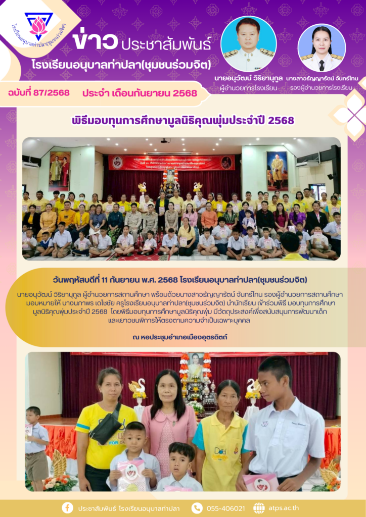 โรงเรียนอนุบาลท่าปลา(ชุมชนร่วมจิต) นำนักเรียน พิธีมอบทุนการศึกษามูลนิธิคุณพุ่มประจำปี 2568 11 กันยายน 2568 ATPS ข่าวประชาสัมพันธ์, จดหมายข่าวประชาสัมพันธ์ FacebookFacebookXXLINELine ATPS