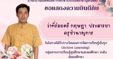 18 พฤศจิกายน 2567ขอแสดงความยินดี กับ นายอนุวัฒน์ วิริยานุกูล ผู้อำนวยการโรงเรียน เนื่องในโอกาสที่ได้รับการคัดเลือกผู้ประกอบวิชาชีพทางการศึกษา เพื่อรับเครื่องหมายเชิดชูเกียรติ “รางวัลคุรุสดุดี ประจำปี 2567“ ประเภท วิชาชีพผู้บริหารสถานศึกษา